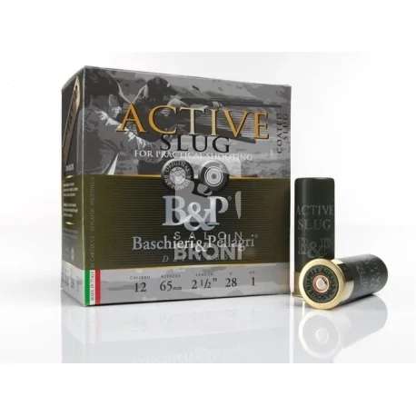 B&P Active Slug Practical Shooting 28 g to wysokiej jakości amunicja kulowa (slug) kalibru 12/65, zaprojektowana z myślą o strzelectwie sportowym, w szczególności dynamicznym (np. IPSC Shotgun). Produkowana przez renomowaną włoską firmę Baschieri & Pellagri, łączy precyzję, powtarzalność i kontrolowany odrzut.