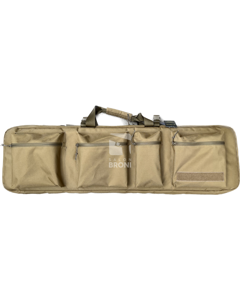 Wysokiej jakości, polskiej produkcji futerał wykonany z tkaniny nieprzemakalnej PVC na 2 jednostki broni długiej - Tactical 3 Coyote. Na przodzie znajdują się trzy kieszenie o wymiarach 22 cm x 24 cm, jedna mniejsza 22 cm x 10 cm zapinane na suwak.