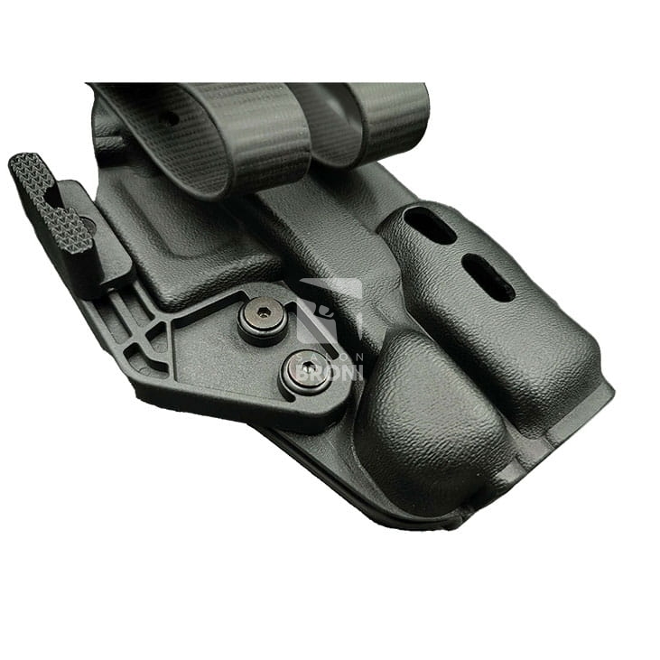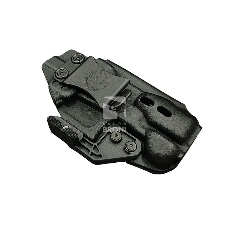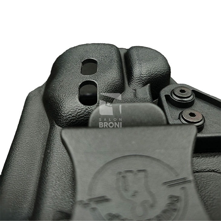 - Całkowicie dwustronna konstrukcja, która umożliwia łatwe i szybkie przenoszenie kabury na drugą stronę