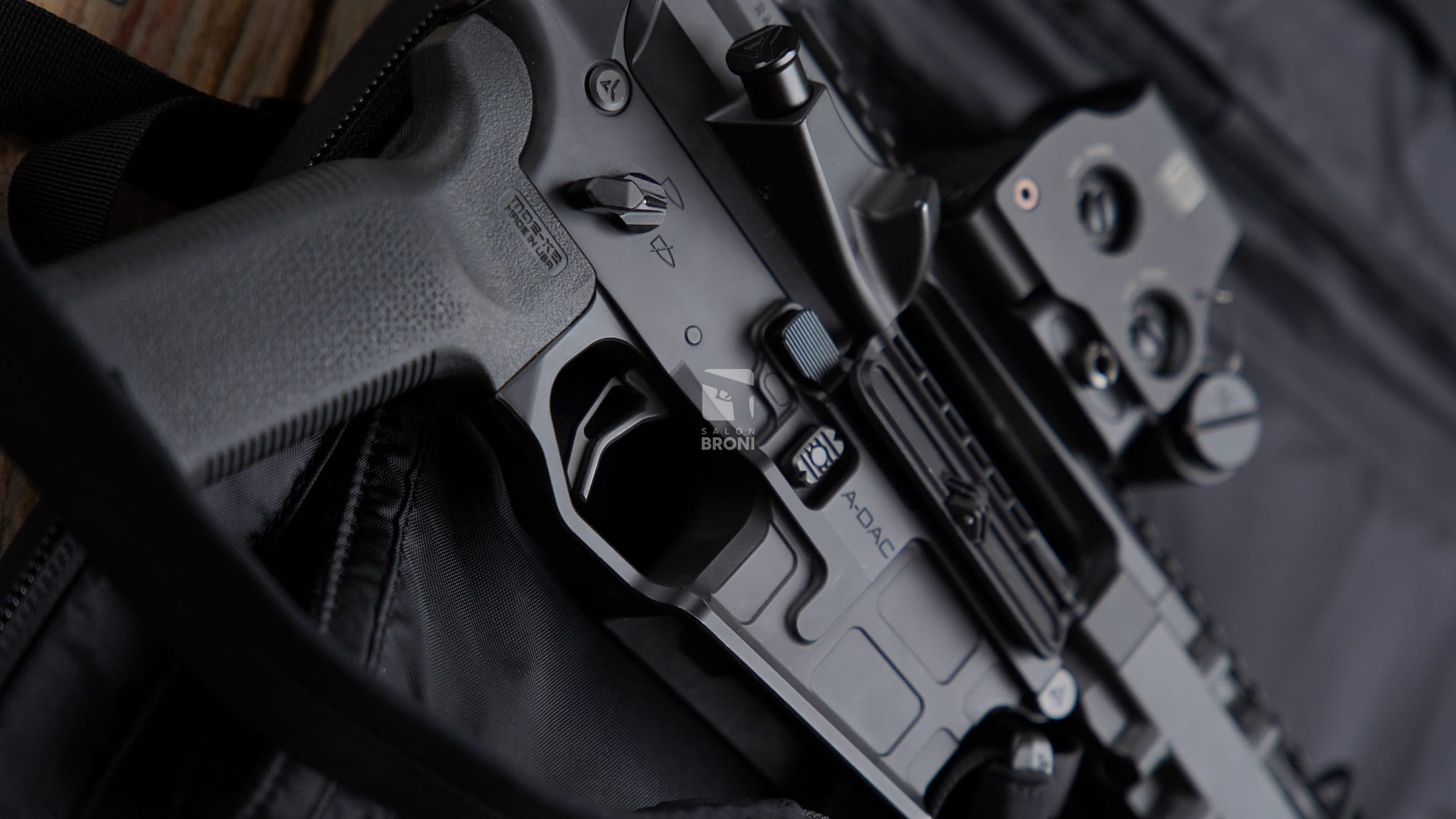 - MANIPULATORY: przycisk A-DAC Funkcja przytrzymywania zamka w pozycji otwartej, selektory ognia Radian Talon;