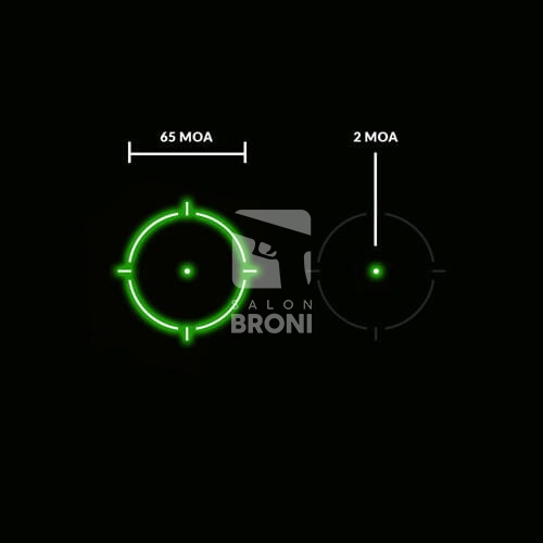 | Rozmiar punktów: | Kropka 2 MOA, okrąg 65 MOA |