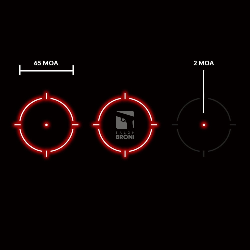 | Rozmiar punktów: | Kropka 2 MOA, okrąg 65 MOA |