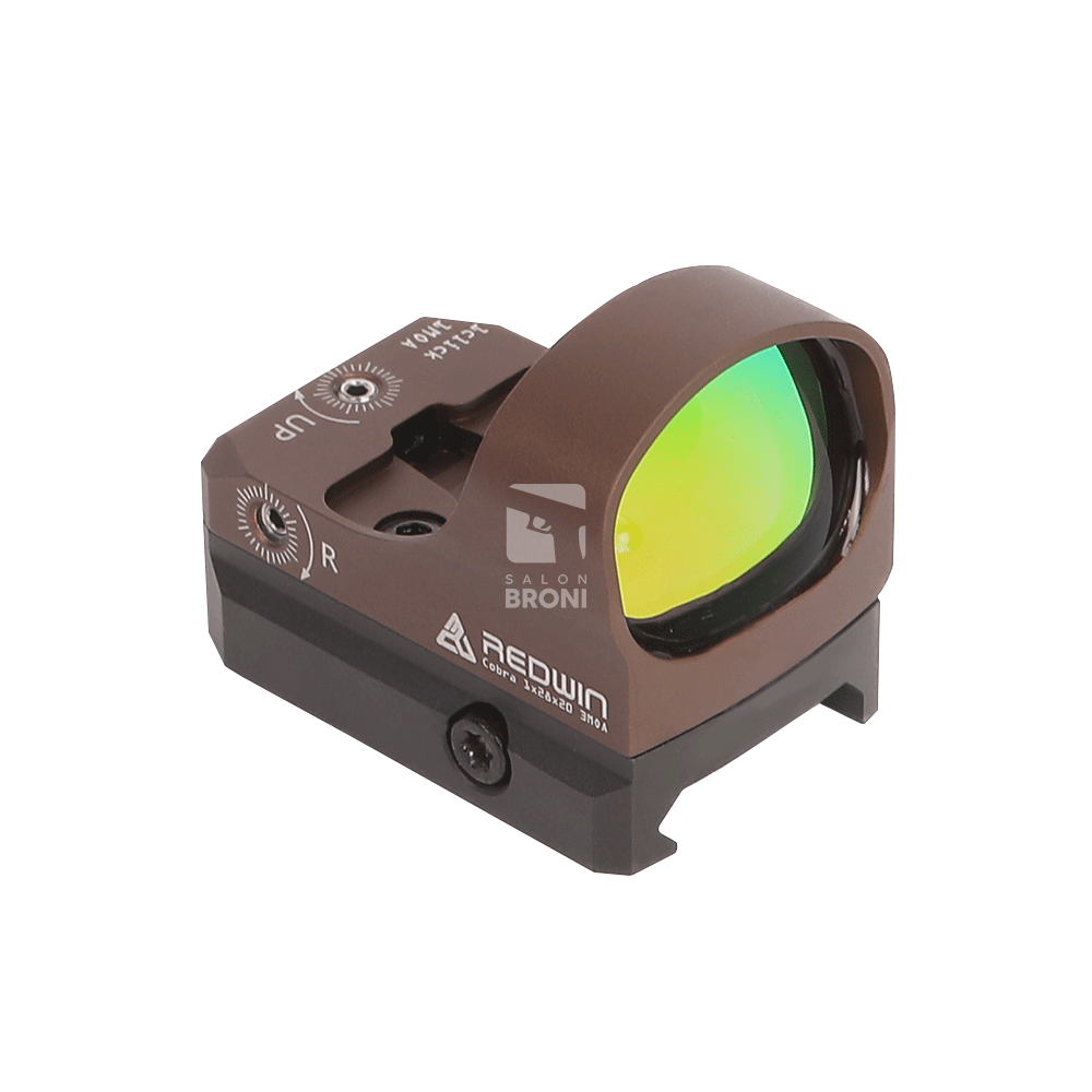 Kolimator REDWIN COBRA 1X28X20 BRĄZOWY to nowoczesny celownik optyczny, zaprojektowany z myślą o pistoletach, takich jak Canik (SFX mod2, Combat Elite i inne standardowe modele) oraz S&W MP, gdzie w zestawie znajduje się odpowiednia płytka montażowa. Dla pistoletów Walther PDP, CZ OR oraz Glock MOS wymagane jest dokupienie odpowiedniej płytki montażowej, dostępnej w ofercie 2BME.