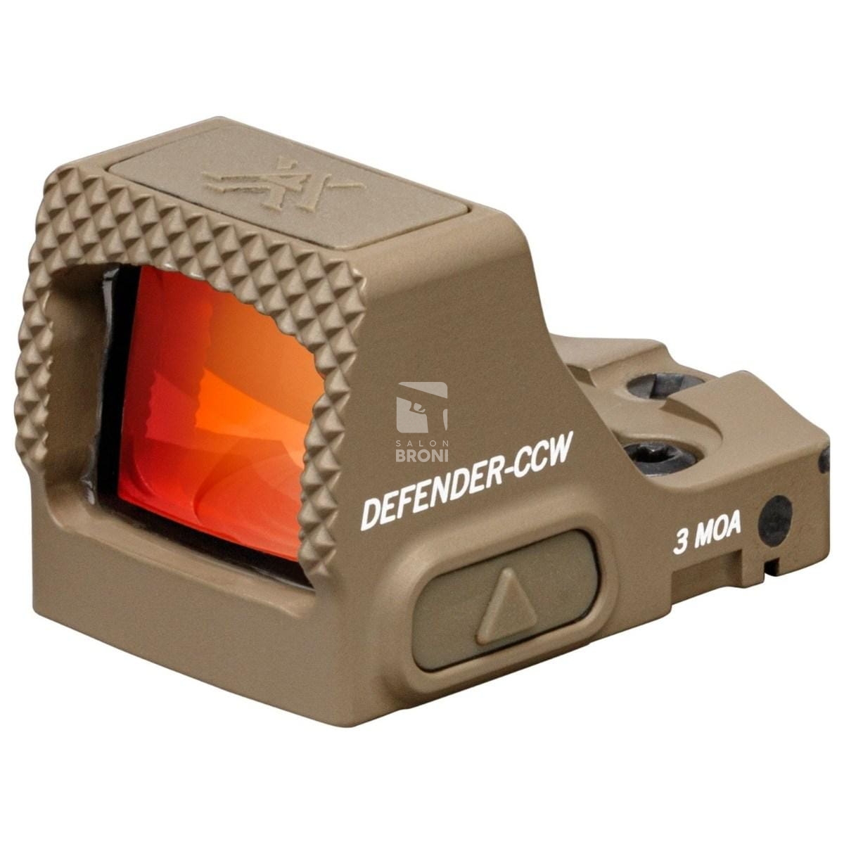 Defender-CCW to celownik mrds, zaprojektowany dla osób, które chcą nosić na co dzień przy sobie pistolet z zamontowanym kolimatorem. Micro kolimator Defender-CCW oferuje błyskawiczne wejście w cel, ultralekką i niskoprofilową konstrukcję oraz szereg nowoczesnych rozwiązań technologicznych, dzięki którym jego codzienne użytkowanie staje się czystą przyjemnością. Celownik zaprojektowano z myślą o pistoletach do samoobrony i CCW, jednak zwarta konstrukcja kolimatora sprawia, że może być również montowany na pistoletach o pełnowymiarowym szkielecie.