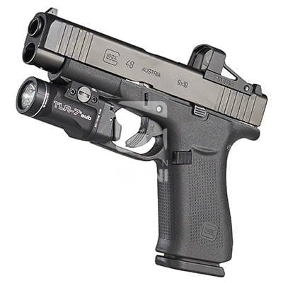 Lekka latarka pistoletowa TLR-7 zapewnia bezpieczne mocowania do wybranych pistoletów subkompaktowych: GLOCK® 43X/48 MOS i GLOCK® 43X/48.