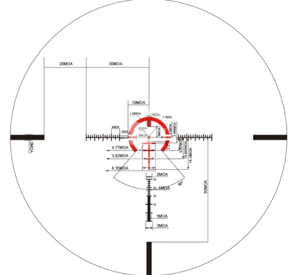 – Niezawodna regulacja nasadki 1/2 MOA, 40 MOA na rundę, całkowity skok 120 MOA