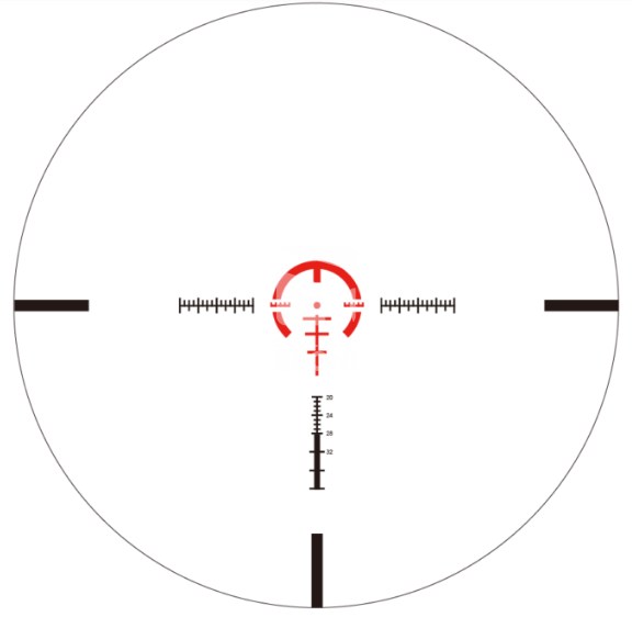 REDWIN Blackbeast 1-10×24 IR – luneta posiadająca Taktyczną siatkę dalmierzową BDC o ekstremalnie niskiej dyspersji, 11 poziomów podświetlenia. Siatka MAT-4 przeznaczona jest do celowania na bliskie i dalekie dystanse. Siatka celownicza BDC + dalmierz, wyposażona w okrąg 18MOA-19MOA do szybkiego celowania i kropkę celowniczą 1 MOA. Podświetlany BDC jest przeznaczony dla kalibru 5,56 na dystansie 250–550 jardów. Siatka posiada linię pod kropką celowania i mierzy niestandardową wysokość/szerokość 45 cm (18”) w odległości 300-500 metrów.