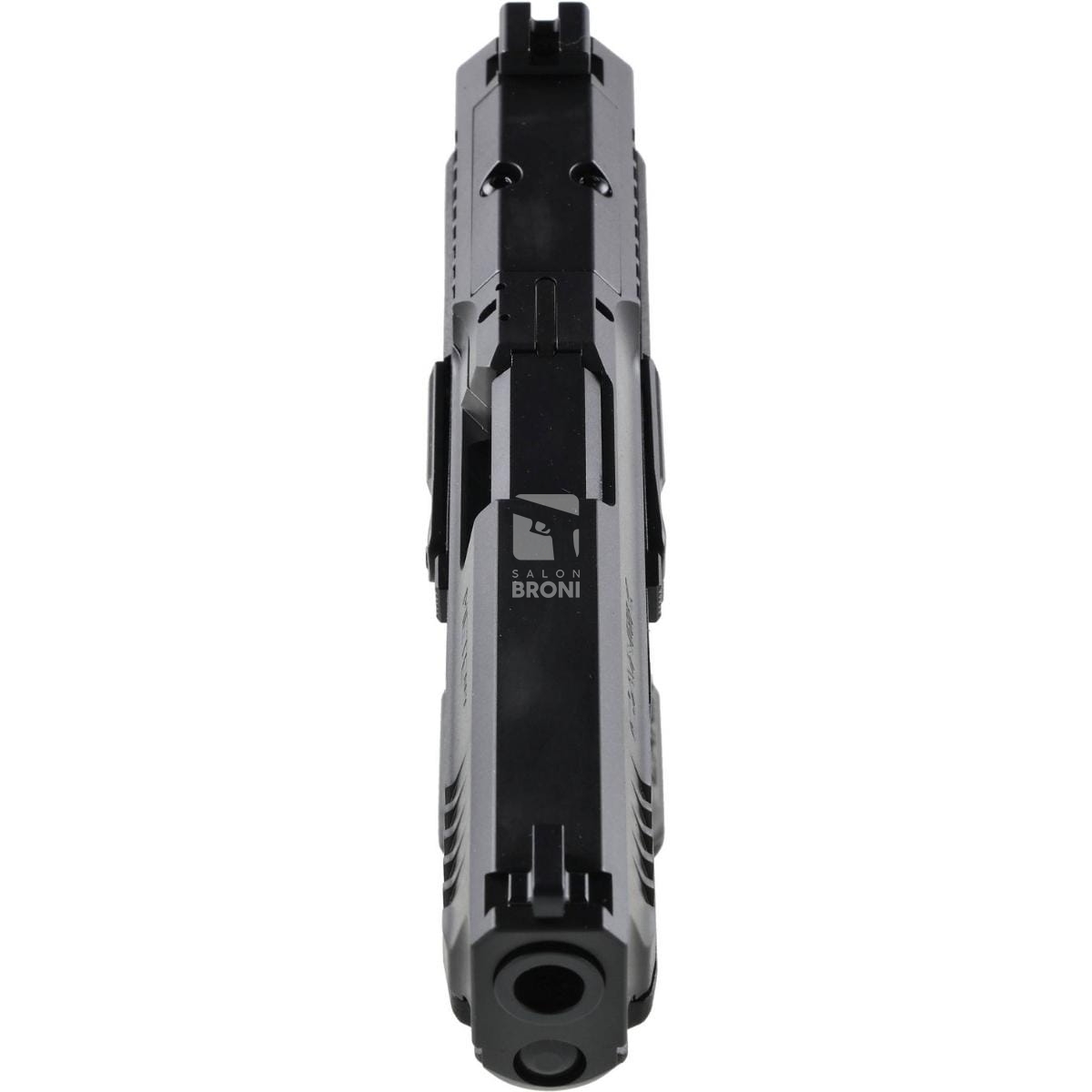 Niskoprofilowy zwalniacz rygla i celownik o skośnej krawędzi (do obsługi awaryjnej jedną ręką) zwiększają funkcjonalność w wielu sytuacjach. Spust o płynnej akcji i krótkim sportowym resecie pozytywnie wpływa na osiąganie najlepszych możliwych wyników. Ponadto w Canik TP9 Mete SFT znajdziemy szereg oburęcznych elementów sterujących, takich jak niskoprofilowy zatrzask i zwalniacz zamka, czerwony stroik zabezpieczający spust z rowkowaną belką oraz zwalniacz magazynka w trzech rozmiarach (S/M/L). Szkielet Canik TP9 Mete SFT uzupełnia lżejszy i chłodniejszy bolt, wyposażony w 13.20 cm lufę zapewniającą efektywne strzelanie i przygotowany do nisko zamontowanych mikrokolimatorów, takich jak kolimator Trijicon RMR czy Shield RMS/RMSc. Miejsce to jest standardowo zaślepione, a w przypadku zastosowania kolimatora należy zastosować płytkę współbieżności (w zestawie).