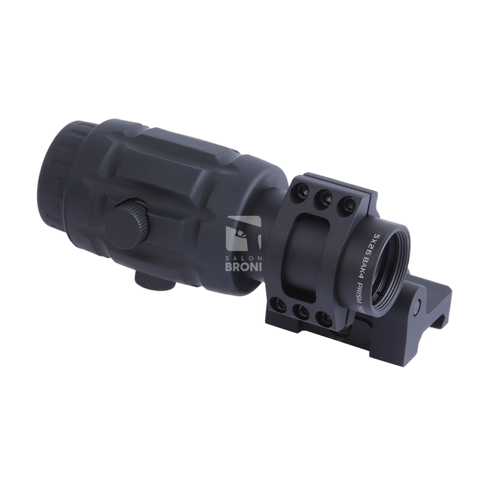 Odchylany montaż boczny (flip-to-side) – Umożliwia szybkie przełączenie z trybu 5x na tryb bez powiększenia.