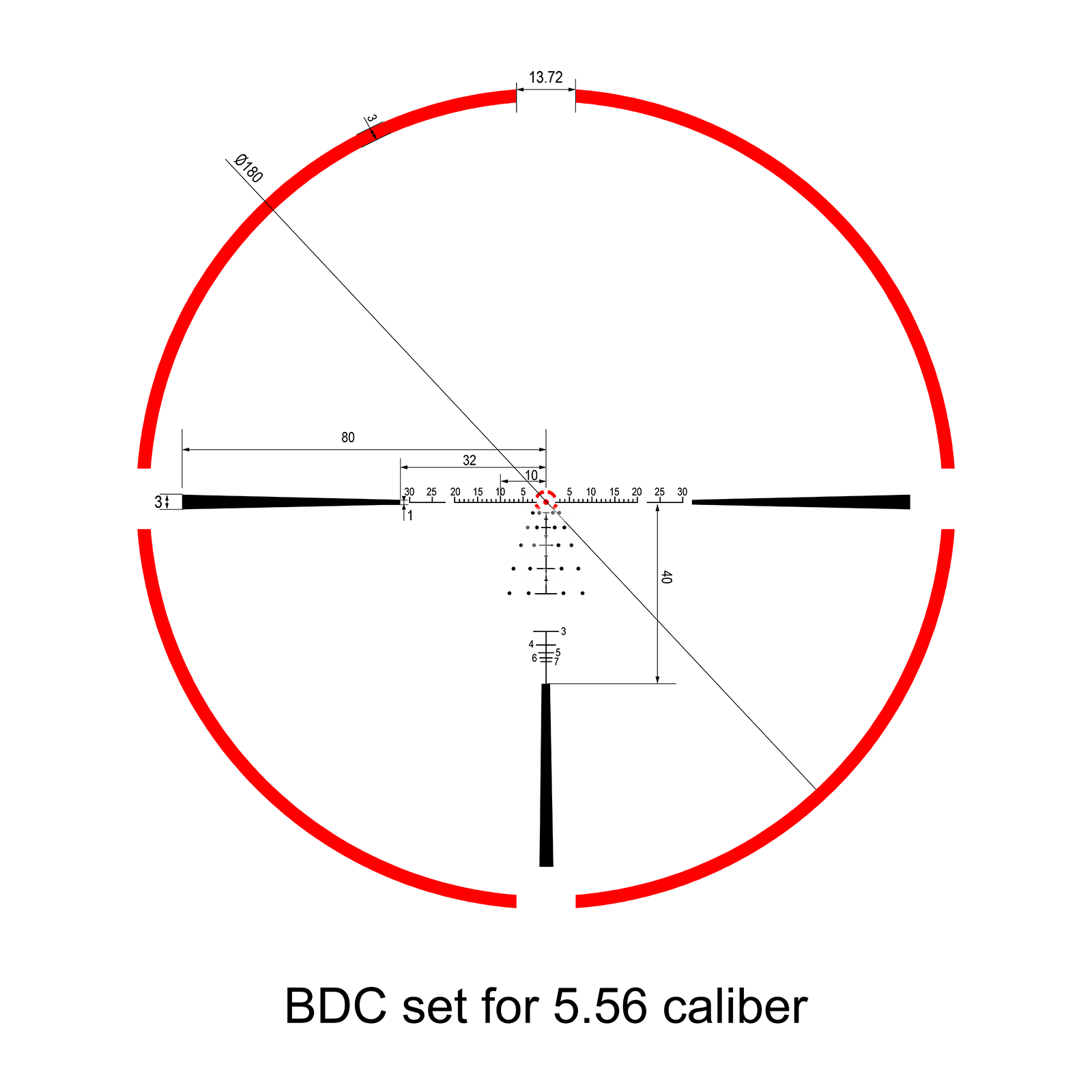 Siatka RAR-1: FFP (First Focal Plane), podświetlana w 11 poziomach (czerwony kolor) dla doskonałej widoczności w każdych warunkach.