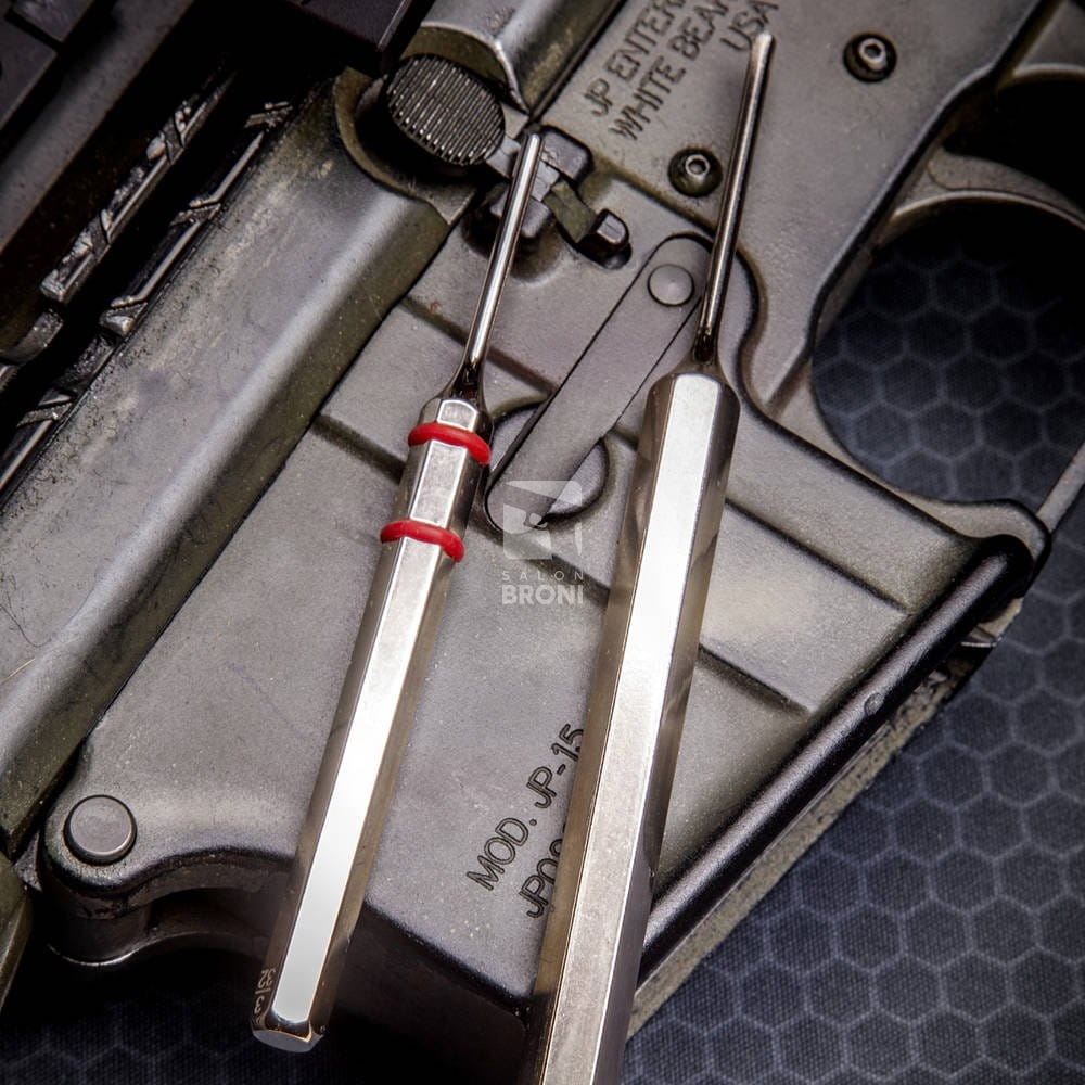 Bolt Catch Punch Set od firmy Real Avid to zestaw dwóch wybijaków przeznaczonych do wybijania pinów zatrzasku zamka w karabinkach AR15. Zatrzask ten często sprawia trudności podczas demontażu i montażu, ponieważ znajduje się blisko ścianki komory spustowej, a jego uszkodzenie może zniszczyć powierzchnię broni. Dzięki specjalnemu projektowi wybijaków, zestaw ten ułatwi wybijanie pinów i zapobiegnie uszkodzeniu broni.