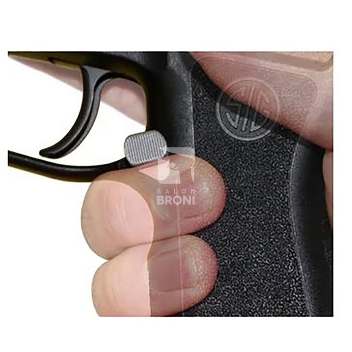 Prawostronny zwalniacz magazynku Sig Sauer P320 umożliwia operatorowi położenie środkowego palca w miejscu, w którym znajdowałaby się dolna trójkątna krawędź fabrycznego zwalniacza magazynka (M17/M18). Eliminuje to boczne obtarcia palców podczas trzymania pistoletu wysoko w rękojeści dla zwiększenia kontroli odrzutu.